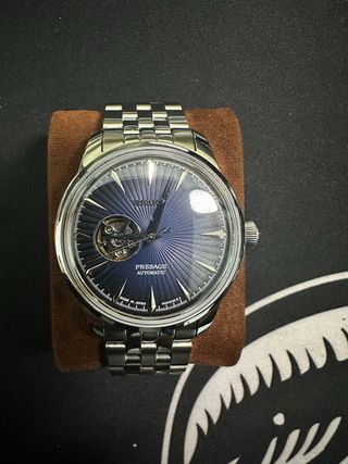 Elegante reloj Seiko Presage con movimiento automático y una llamativa esfera azul. Precio algo negociable - Diseño con apertura en la esfera para ver el mecanismo. - Correa de eslabones plateada. - totalmente nuevo sin rasguños