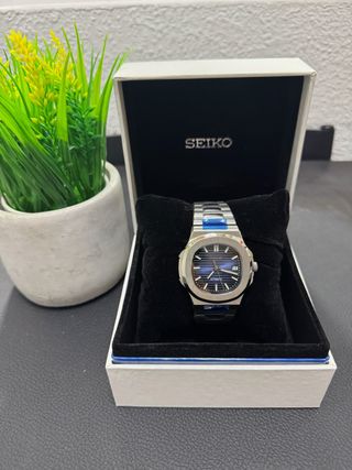 ⌚ Seikonaut Blue – Mod clásico tipo Seiko, automático y de alta calidad Vendo este Seikonaut Blue, un reloj estilo Seiko modificado, robusto y elegante. Está fabricado en acero inoxidable 316L, con cristal de zafiro anti-rayas y anti-reflejos, perfecto para uso diario o actividades al aire libre. Características: • Diámetro: 41 mm • Grosor: 12 mm • Cristal: Zafiro anti-reflectante • Correa: Goma ajustable (14.5 cm – 22 cm) • Movimiento: Seiko NH35 automático • Cierre: Mariposa (butterfly clasp) • Resistente al agua, probado y aprobado Un reloj moderno, resistente y con muy buena.