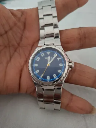 Elegante reloj Breil con esfera azul y detalles plateados. Caja de 37mm sin la corona. Pila recién cambiada. - Diseño deportivo y moderno. - Correa de eslabones plateada. - Bisel con marcadores.