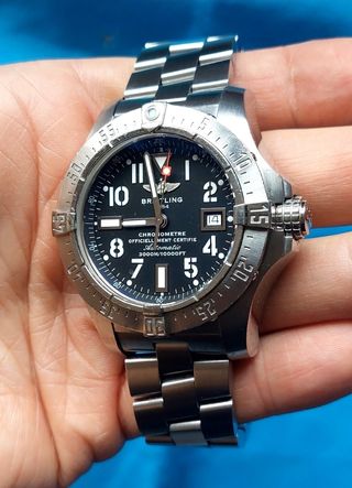 MUY IMPORTANTE: La transacción solo se realizará en punto seguro y con todas las garantías para comprador y vendedor. Imprescindible contrato y DNI físico. Reloj comprado en joyería oficial con factura y todos los papeles y certificados. Todos los estuches y papeles, cajas, todo intacto. En perfecto estado. Armis de acero. Perfecto estado y funcionamiento. 3000 m. COSC. Fotos por privado si interesa la compra. VALORO CAMBIOS. breitlin, breiling, breilin, abenger, rolex, panerai, oris, omega, tag, tudor, tissot, iwc, longines, hamilton, automático, sewolf, manual, breitlimg, diver, superocean ocean emergency gmt navitimer herit