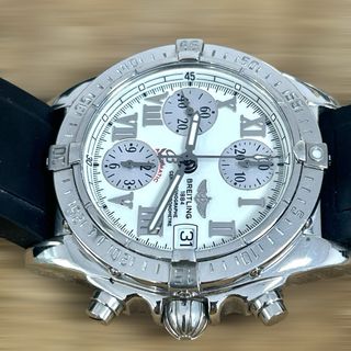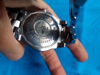 Reloj Breitling con esfera plateada y bisel azul. - Bisel giratorio bidireccional. - Cronógrafo con subesferas. -Sin correa -Negociable