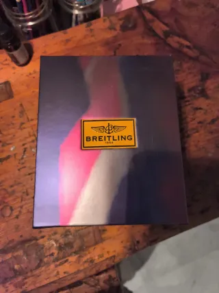 Estuche original de la marca Breitling. Presenta un diseño elegante y moderno. - Especial para modelo chronomat serie limitada Fricce Tricolori - Color plateado con detalles en rosa. - Incluye el logo de la marca.