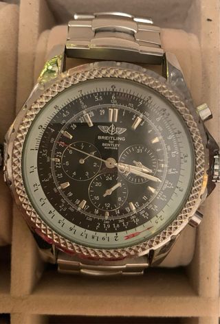 Reloj Breitling Bentley 6.75 con esfera azul y fecha a las 12. Completo de caja y documentos. - 48 mm de diámetro. - armix Breitling mas cuero. - Cronógrafo. Más fotos, vídeo.... a petición Rolex, Omega, tag heuer, tudor, longines, patek, hublot,