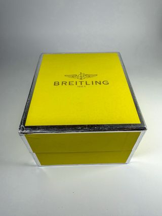 Caja de colección Breitling en color amarillo y plateado. Incluye CAJA EXTERIOR DE CARTÓN LIBRETO SELLO