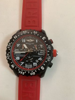 Reloj Breitling Endurance Pro con correa de caucho. - Esfera negra con detalles en rojo. - Bisel giratorio. - Cronómetro.