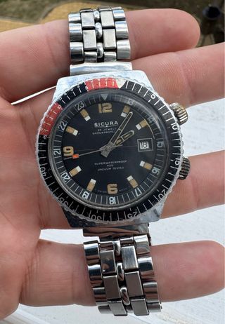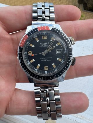 🕰️ Sicura by Breitling – Cuerda manual – Vintage – Muy valioso Pongo a la venta reloj Sicura vintage de cuerda manual, una pieza muy interesante y valiosa para coleccionistas, ya que Sicura fue la marca adquirida por Breitling, y forma parte directa de su historia. 🔹 Marca: Sicura (propiedad de Breitling) 🔹 Movimiento: Cuerda manual 🔹 Funcionamiento: Funciona correctamente, carga bien y mantiene la marcha 🔹 Brazalete: Armis original 🔹 Fabricación: Swiss Made 🔹 Estado: Reloj en buen estado general para su edad, con el desgaste normal del uso en caja y bisel, algo totalmente habitual en este tipo de relojes herramienta vintage.