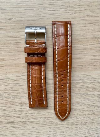 Correa Breitling de piel de cocodrilo original. 22-20mm con hebilla de acero pulido Breitling relieve. En buen estado