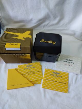 Elegante caja para reloj de la marca Breitling totalmente original siempre ha estado guardada está completa cajita interior con su almohadilla empieza a deshacerse típico fallo de estas cajas exteriormente está Exelente es original 100x100 Precio rebajado al Max Max