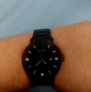 Elegante reloj Bulova en perfecto estado. - Diseño moderno y sofisticado. - Caja y correa en color negro. -El único inconveniente es que no lleva pilas.