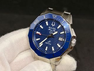 Elegante reloj Bulova Marine Star con detalles en azul y plateado. - Diseño moderno y deportivo. - Bisel giratorio azul. - Esfera con detalles calados. Se nota que ha sido usado, tal como se ve en las fotos, pero está en muy buenas condiciones.