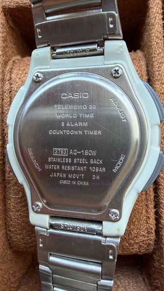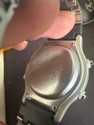 Reloj Casio vintage modelo AW-600 con correa negra y detalles plateados. Un clásico de los años 90. - Cronógrafo con función de 1/1000 seg. - Resistente al agua 100 metros. - Pantalla digital y analógica. - no funcciona la pantalla digital(lo saqué después de casi 1 ańoy ya no funcionó! -el analogo funcciona perfectamente