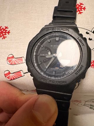 Reloj Casio GA-2100 de color negro. - Diseño moderno y resistente. - Correa de resina. - Esfera analógica y digital. - tiene dos arañazos que podeis verificar en el cristal, que si no te fijas a conciencia ni los notas. Lo vendo porque me he cansado del modelo