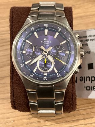 Reloj Casio Edifice EFR-549D con cronógrafo. Esfera azul y detalles plateados. - Sin caja, solo el reloj. - Resistente al agua 100m.