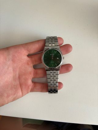 Elegante reloj Casio con un diseño clásico y moderno. - Esfera de color verde. - Correa de metal plateado. - Resistente al agua 50M. -PERFECTO ESTADO -PRECIO NEGOCIABLE -Correa recortable