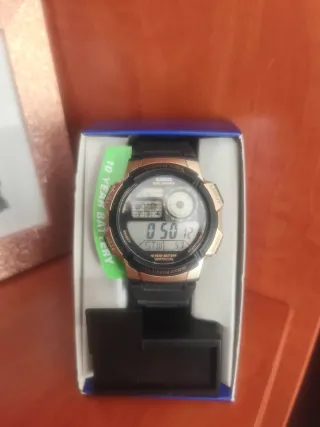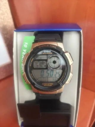 Vendo Casio AE-1200WHL-5AVEF nuevo SIN ESTRENAR, un modelo muy buscado por su diseño retro y fiabilidad, actualmente bastante difícil de conseguir. Diseño clásico “Casio Royale” con caja metálica en tono bronce y correa de cuero marrón. World Time: hora en 31 zonas horarias (48 ciudades). Batería de 10 años, luz LED, cronómetro, temporizador, alarmas múltiples, calendario automático y formato 12/24h. Resistencia al agua WR, soporta uso diario sin problema. Muy buen estado y funcionando perfecto. Ideal para amantes de Casio y relojes retro. Mira bien las fotos, no se aceptan devoluciones sin justificar.