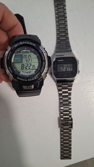Vendo 2 relojes Casio,uno es un vintage A168 y otro es uno de los primeros modelos de G-Shock. Añado otro reloj de marca va va voom (de este reloj las esferas pequeñas son de adorno,lo que funciona es la hora y el calendario).Los Casio se encuentran en buen estado,especialmente el modelo vintage que lo compré hace 2 años. El G-Shock funciona perfectamente, y de aspecto está bastante bien,pero tiene más años.