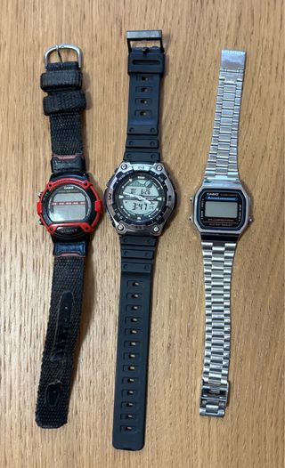 relojes Casio - Modelo AQW100 con correa negra: pilas cambiadas en noviembre 2025 - Modelo W92H con correa negra, sin pilas pero funciona - Modelo A168W metálico