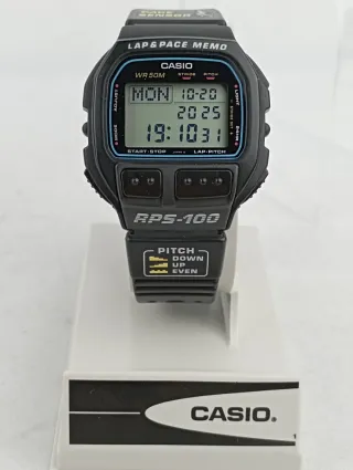 ✅Totalmente nuevo, perfecto para coleccionistas✅ Reloj deportivo Casio RPS-100 con funciones de cronómetro y medidor de ritmo. - Resistente al agua WR 50M. - Pantalla digital con fecha y hora. - Botones de START-STOP y LAP-PITCH. - Indicador de PITCH (arriba, abajo, normal).