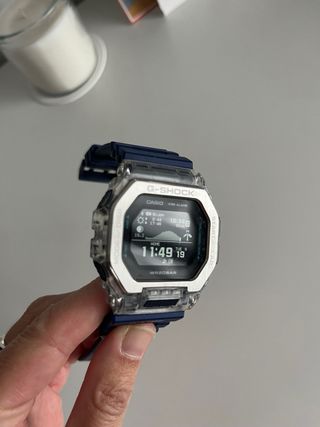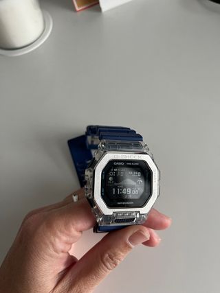 Reloj Casio G-Shock GBX-100S con correa azul y caja transparente. - Modelo G-Shock. - Correa de resina azul. - Caja de resina transparente. - Resistencia al agua WR20BAR.
