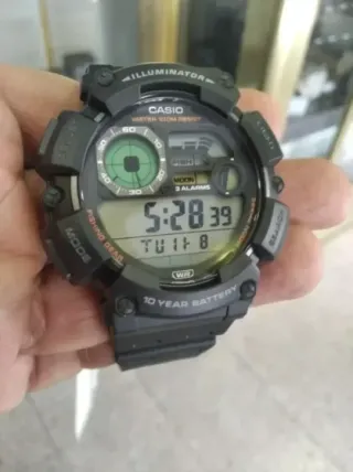 CASIO PESCA, FASES LUNARES, 3 ALARMAS, GRANDE 54MM