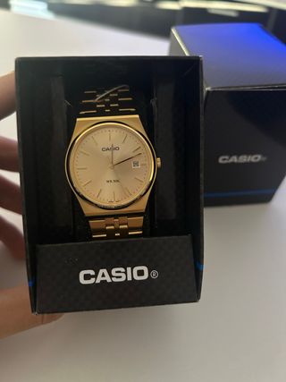Elegante reloj Casio con un acabado dorado. - Diseño clásico y atemporal. - Correa metálica ajustable.