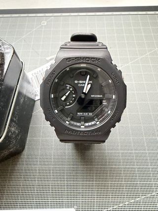 Reloj Casio G-Shock modelo GA-2100-1A1. - Diseño moderno y resistente. - Correa de resina. - Esfera analógica y digital. Muy poco uso, lo compré en una joyería de Roma. El círculo que se ve en la foto es el reflejo de la cámara de mi móvil al hacer la foto.