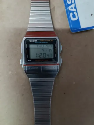 Reloj Casio digital con un diseño clásico y moderno.nuevo nunca usado - Correa de metal plateado. - Detalles en color rojo en la caja. - Pantalla digital clara.