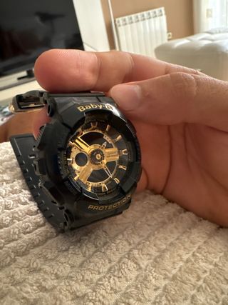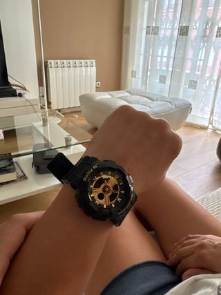 Reloj Baby-GSHOCK con un diseño moderno y llamativo. - Combinación de colores negro y dorado. - Correa resistente. Está nuevo, en perfectas condiciones