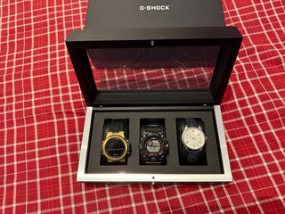 Conjunto de tres relojes de las marcas Casio y Michael Kors. La caja es G-Shock Limited Edition Collection - Un reloj Casio G-Shock con correa negra.( MASTER OF G Rangeman GW-9400-1). Precio tiendas 299€ - Un reloj Michael Kors con esfera blanca y correa de piel azul( MK8930 Benning Three Hand Silver) Agotado 195€ - Un reloj Michael Kors dorado con correa negra( MK8865 Michael Kors DYLAN) Agotado 249€ Vendo el pack completo en estuche de colección y sus cajas + manual de cada reloj en 490€ Ver relojes en mi perfil Las piezas están muy bien cuidadas, impolutas y con poco uso , valoradas en 750€. No contesto ofertas absurdas