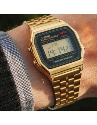 Reloj Casio digital con un acabado dorado brillante. Un clásico atemporal. - Diseño retro. - Correa metálica ajustable. - Pantalla con iluminación.