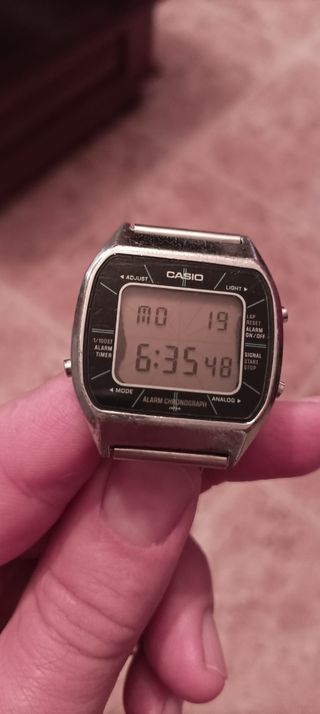 Funciona perfectamente Luz y sonido Los pulsadores responden sin problema Tiene sangrado a ambos lados del lcd,MIRAR TODAS LAS FOTOS DETENIDAMENTE No afecta a su funcionamiento La correa es parecida a la original pero la hebilla es de un seiko Tiene marcas de uso ya que son unos 44 años de vida Tiene función analógica(última foto)y así parece dos relojes en uno NO OFERTAS,NO CAMBIOS Disponible mientras esté el anuncio
