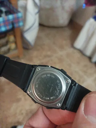 Reloj Casio con acabado plateado y detalles en negro. Un clásico de la marca. - Correa de metal. - Pantalla digital. - Resistente al agua (Water Resist). Ha sido usado pero sigue funcionando, los roces en el baño plateado debido al uso pueden apreciarse en las fotos.