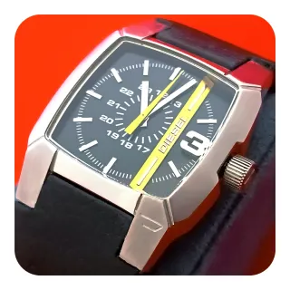 👉🏼 Acepto cambios⌚👍🏼 En perfecto funcionamiento y muy buen estado, con apenas marcas de uso. El precio no incluye pila. Opción de pila nueva colocada por 3€ más. Reloj de muñeca Diesel Cliffhanger modelo DZ-1089 original. •Esfera rectangular •Caja de acero inoxidable de 36x36mm •Movimiento japones Citizen Miyota, analogico de cuarzo •Dial color negro en dos niveles de profundidad con franja vertical divisoria amarilla •Numeros y agujas plateados y segundero amarillo •100M water resistant •Correa de piel original en buen estado Casio Sport Watch mano Seiko Lotus viceroy festina breil fossil pulsera potens Racer Kronos dolce