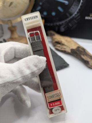 Cinturino per orologio Citizen originale, nuovo e mai usato (NOS) in stile vintage. - Larghezza 18 mm. - Materiale in pelle. - Prezzo originale indicato sull'etichetta: ¥ 2.500.