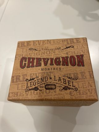Caja de reloj de la marca Chevignon. - Diseño con estampado vintage. - Detalles en rojo y negro.