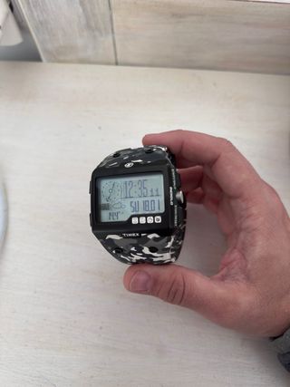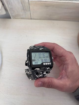 Reloj Timex Expedition WS4 con un diseño de camuflaje llamativo. - Correa con estampado de camuflaje. - Esfera digital con múltiples funciones. PRACTICAMENTE NUEVO, tiene BAROMETRO, ALTIMETRO, TERMOMETRO etc. Modelo muy poco visto.