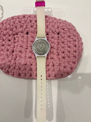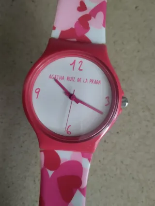 Reloj con un divertido diseño de corazones. - Correa con estampado de corazones en tonos rosas y rojos. - Esfera blanca con detalles en rosa.