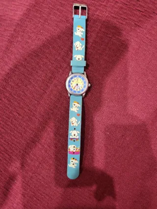 Reloj analógico infantil con un divertido diseño de perros. - Correa con estampado de cachorros. - Esfera con números y dibujos.