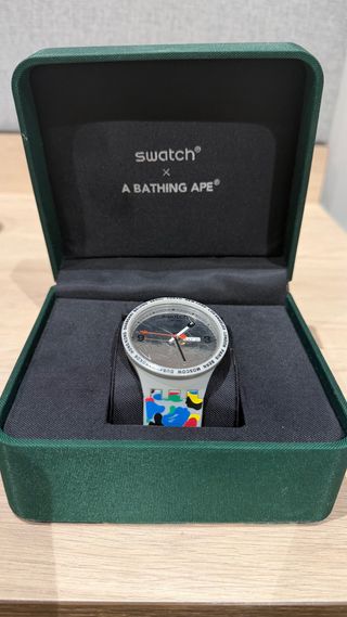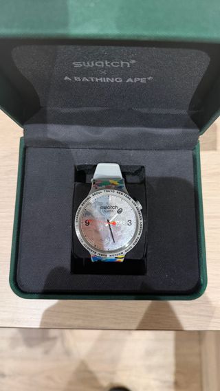 Este reloj Swatch X Bape es una pieza de colección. - Diseño exclusivo de la colaboración. - Correa con estampado camuflaje multicolor. - Caja original incluida. - Ticket de compra