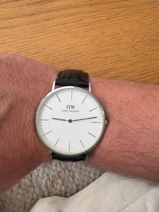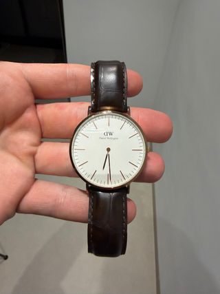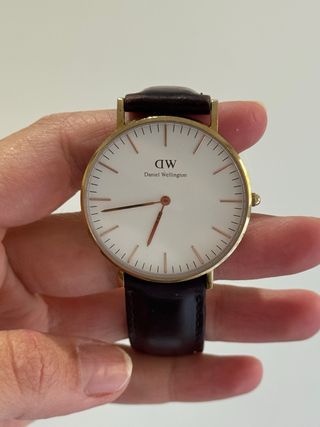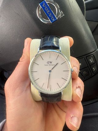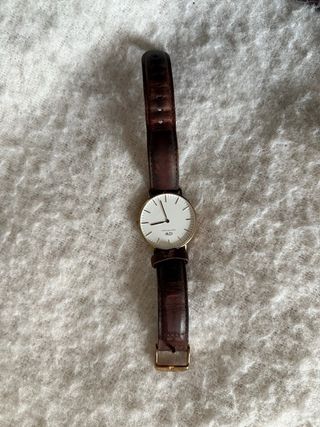 Reloj Daniel Wellington, comprado en Suiza en 2018. Ha sido poco usado. No dispone de caja ni factura. Necesita una pila nueva. El diámetro de la caja es de 28 mm. Es un modelo limpio y elegante.