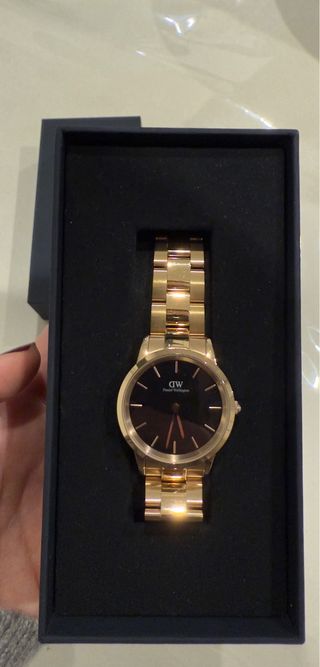 Elegante reloj original Daniel Wallington para mujer ,pulsera con un diseño moderno,me lo han regalado y es grande para mí gusto,29×36mm. No tiene caja se envía en su caja protectora.