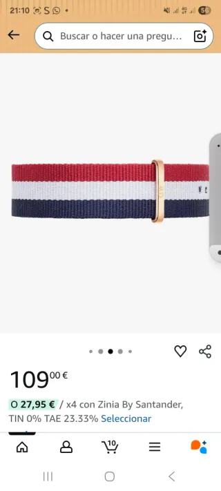 Elegante reloj de pulsera con un diseño clásico y moderno. Correa de tela con rayas azules, blancas y rojas. Esfera blanca con detalles dorados. Esta como nuevo. Hago envios. El precio original de este reloj por internet es de 149€. Yo lo vendo por 30€. Lo vendo sin caja.