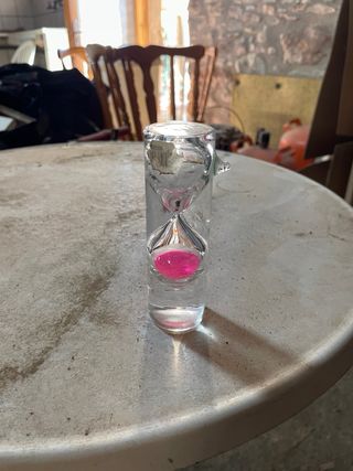 Este reloj de arena decorativo contiene arena rosa y aigua. - Diseño cilíndrico. - Ideal como objeto decorativo.