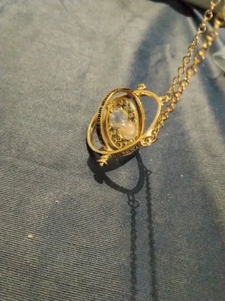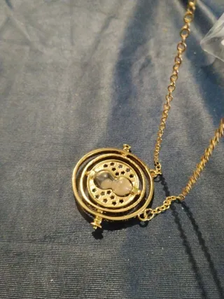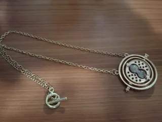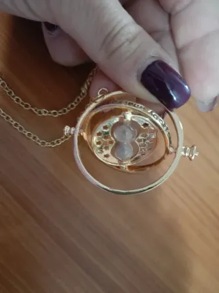 Este giratiempo es un accesorio inspirado en el universo de Harry Potter. Su diseño detallado lo hace destacar. - Cadena dorada con cierre de mosquetón. - Colgante con forma de reloj de arena. - Múltiples anillos giratorios. Funcionales