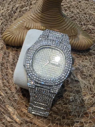 💎 Reloj de Lujo con Moissanita VVS – Certificado GRA 💎 Exclusivo reloj de alta gama fabricado en acero inoxidable, con incrustaciones de moissanita VVS certificada, ofreciendo un brillo comparable al diamante. 🔸 Cristal de zafiro antirrayaduras 🔸 Movimiento automatico Miyota 8215 🔸 Incluye certificados oficiales GRA 🔸 Estado: nuevo, sin uso 🔸 Pasa detector de diamantes 🔸 Resistencia al agua 3 ATM (uso diario; no recomendable mojar debido a las incrustaciones) Incluye caja y documentación. Ideal para quien busca elegancia y presencia.