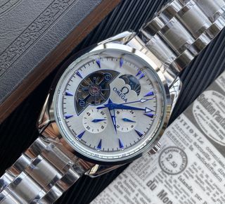 Elegante reloj con un diseño sofisticado que combina tonos dorados y plateados. - Mecanismo visible en la parte trasera. - Correa de metal. - Resistente al agua. El reloj se a usado ocasionalmente y esta como nuevo perfecto para regalar y muy buena calidad