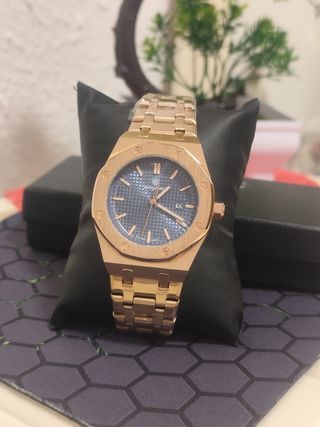 Elegante reloj Audemars Piguet con esfera azul y detalles dorados. - Diseño de lujo. - Brazalete a juego.