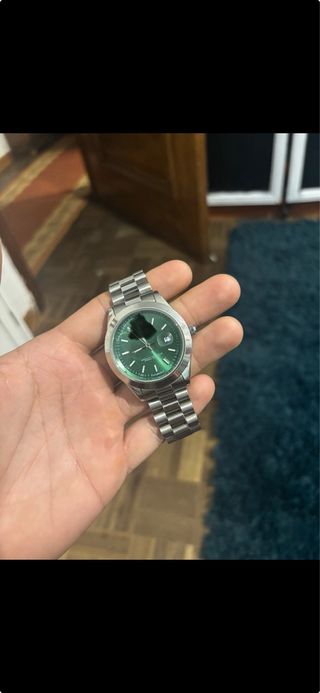 Elegante reloj con esfera verde. - Brazalete de acero inoxidable. - Diseño clásico y atemporal. Esta en negro la marca porque wallapop me quita. Cualquier cosa preguntar