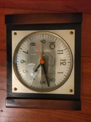 Elegante reloj de muro con un diseño clásico. - Marco exterior de madera oscura. - Esfera redonda con detalles dorados.