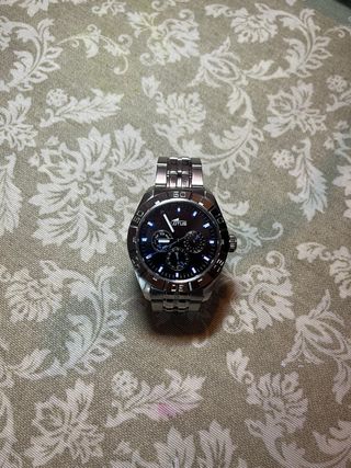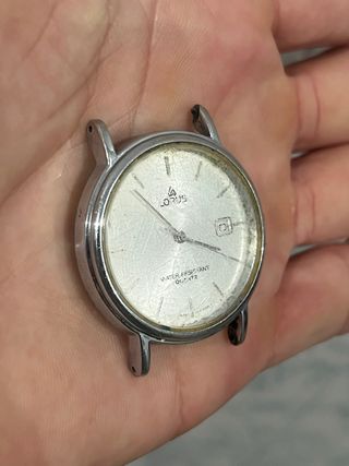 Vendo reloj marca Lotus de caballero. Diámetro de la caja 36mm contando corona. El reloj funciona, tiene la pila recién puesta. Se vende SIN la correa, posibilidad de añadirla por 10€ a mayores, indicar antes de realizar la compra. Cristal con muchos rayones, pero no partido.